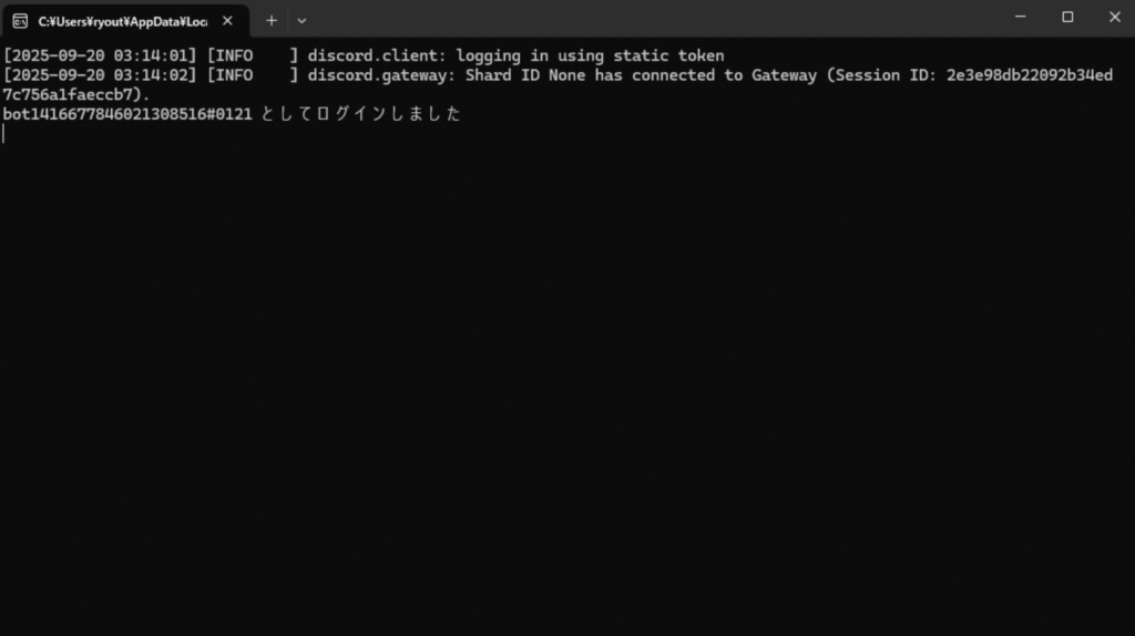 Botを停止したい場合は、ターミナルで Ctrl + C