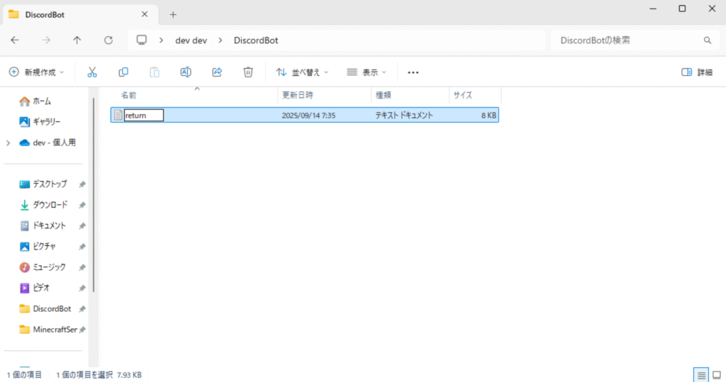 ファイル名もわかりやすいもので構いません。(今回はreturnとしています)