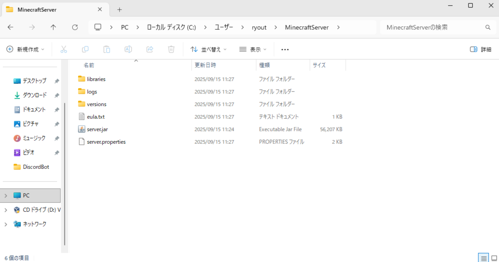 ユーザーフォルダの直下がおすすめです。 - 公式サーバーソフトをダウンロード