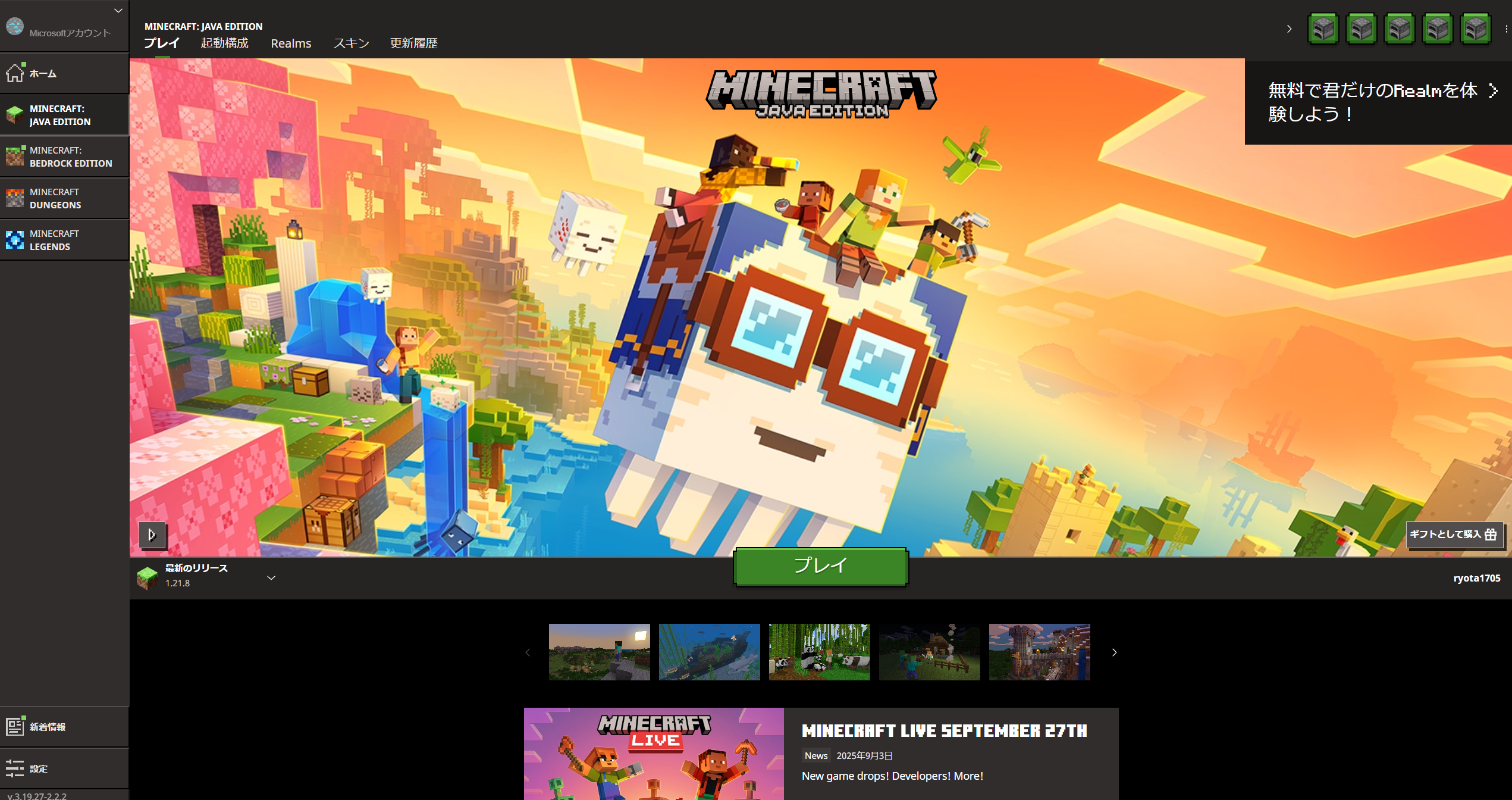 ・HTTPS経由のDNS→オフ - マインクラフト(Java版)を起動します。